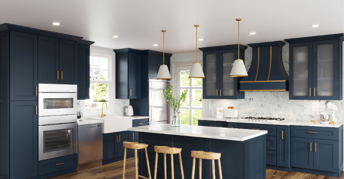 Natural birch wood shaker-style kitchen cabinets have a light, creamy tone with subtle grain variations. The shaker design features clean lines and recessed panels, offering a timeless and versatile look. A clear finish enhances the wood’s natural warmth and durability.